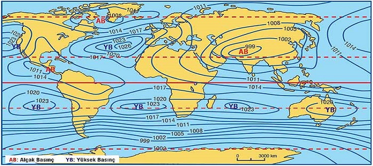 Yeryüzünde dünyanın şekli ve günlük hareketi sonucunda çeşitli basınç kuşakları oluşmuştur. Bunlar bütün yıl varlıklarını sürdürürler.