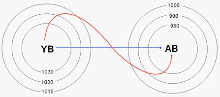 3- Alçak Basınç (Siklon):1013 mb’dan daha alçak olan basınca alçak basınç denir. Alçak basıncın görüldüğü yerlerde daima yükselici hava hareketleri vardır.