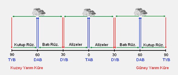 Ancak, Dünya’nın ekseni etrafında dönmesinden dolayı bu hava kütlelerinin yönlerinde sapmalar meydana gelir.