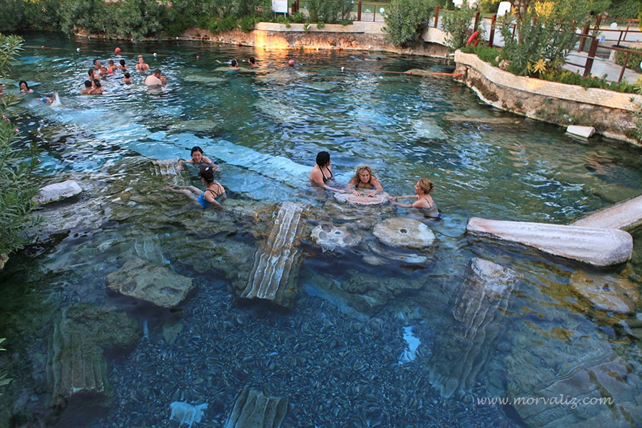 Özellikle Roma İmparatorluğu Dönemi’ nde Hierapolis ve çevresi tam bir sağlık merkezi durumundaydı. O yıllarda antik kente ve etrafına kurulan 15’ ten fazla hamama binlerce insan gelir ve sağlıklarına kavuşurlardı. Bugün antik havuzu meydana getiren İ.S. VII. Yüzyılda oluşan depremdir. Sütunlu caddenin yanında yer alan sivil agoraya ait ion düzeninde yapılmış olan (İ.S. I.yy) portik bu deprem sonucunda oluşan kırık içinde meydana gelen havuzun içine yıkılmıştır.