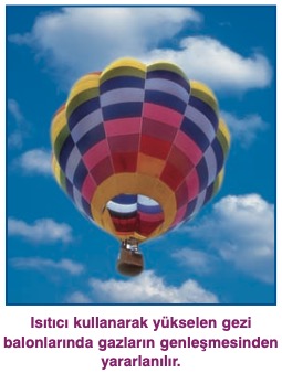 Az şişirilmiş ve ağzı bağlı bir esnek balon sıcak su üzerine konulursa balonun içindeki gazın genleştiği ve balonun şiştiği gözlenir. Yani ısıtılan gazlar genleşir.