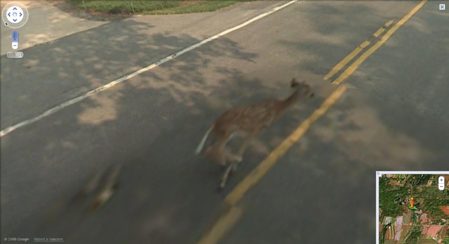 Google Street View aracı çekim yaparken geyike’e çarparak ölümüne neden oluyor. Google resimleri kaldırmış olsada buraya tıklayarak görüntüye ulaşabilirsiniz.