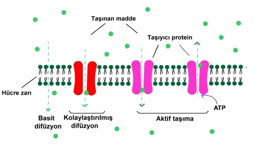 Not 1: Hücre zarından geçebilecek büyüklükteki bir maddenin miktarı hücre içi ile hücre dışı arasında farklılık oluşturuyorsa burada aktif taşıma var demektir.