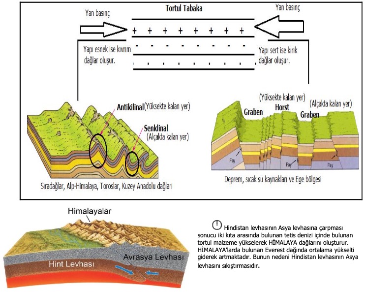 4- Alp Kıvrımları(Mesozoyik – Tersiyer 3. zaman): Alpler, Kayalıklar, Himalayalar ve And Dağları(GENÇ oluşumlu