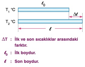* Aynı maddeden yapılmış, ilk boyları eşit olan çubukların sıcaklıkları eşit olarak artırılırsa, kalın olan çubuk ile ince olan çubuğun boyları eşit olarak artar.