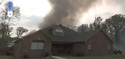 İtfaiye tarafından müdahale edilmiş, yanan ev Google Street View aracının çekimine takılıyor. Görüntülerin bir çoğu Google tarafından silinmiş. Mevcut Street View için buraya tıklayınız.
