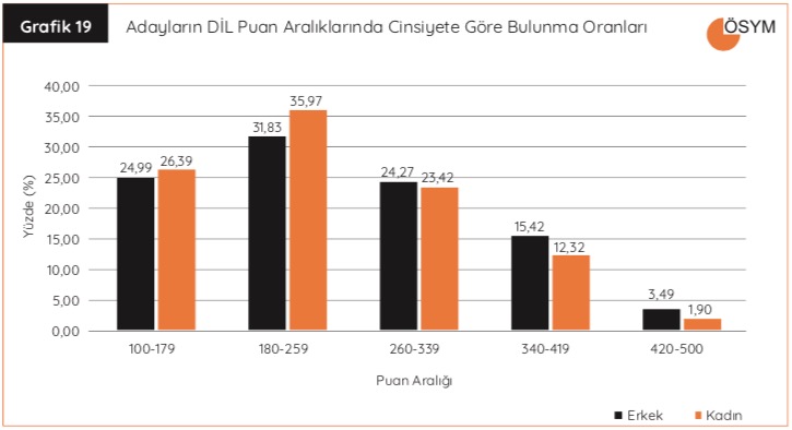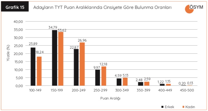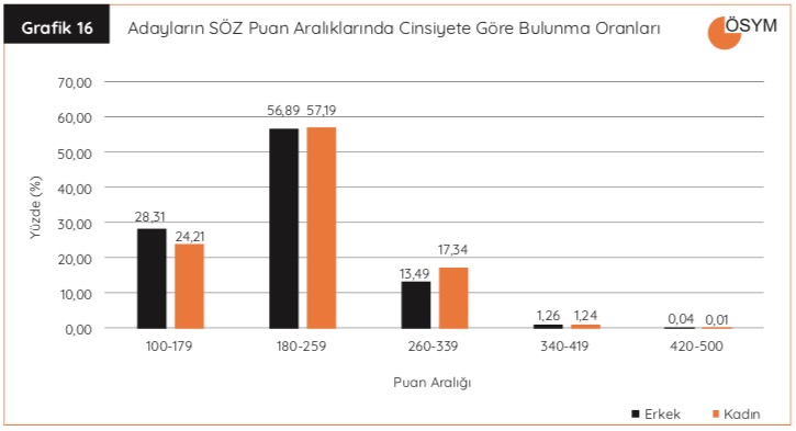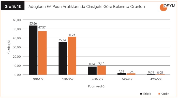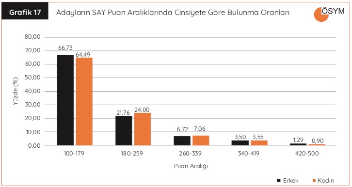 Ortaöğretim Başarı Puanı eklenmeden oluşan sınav puanlarının dağılımı. Sayılarda tüm adaylar dikkate alınmıştır. |