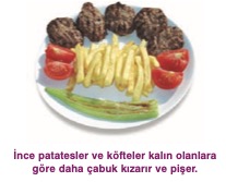 Maddelerin Küçük Olanları Daha Çabuk Pişer. Küçük parçalı et mangalda büyük parçaya göre, sıcak suya atılan küçük patatesler büyük olanlara göre daha çabuk pişer.
